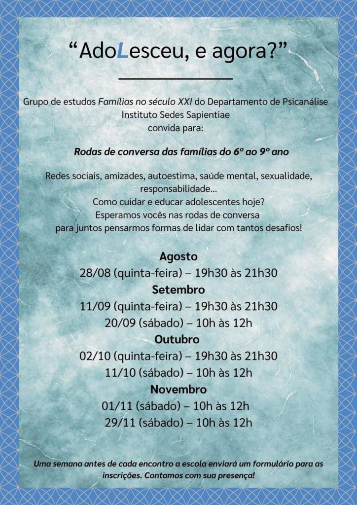 Toda terça 18h-19h na sala de Artes. Primeiro encontro em 19/08